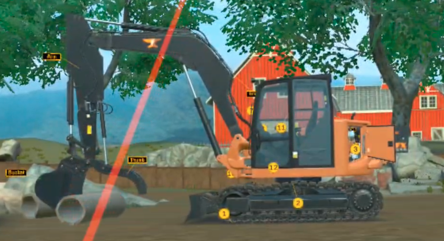 - Excavator Components Label: The labels on the vehicles arms and bucket